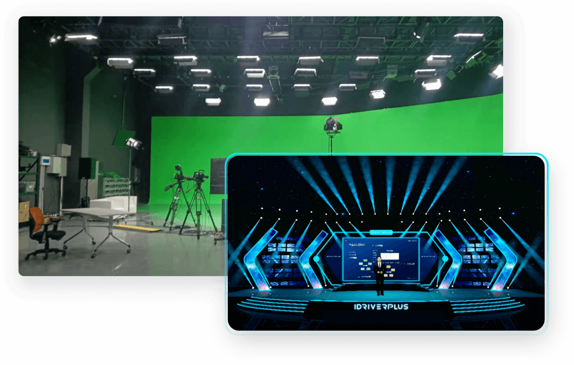 提供虚拟演播厅直播录制和虚拟场景UI设计,200平方超大场地,实时合成录制直播,为大赛增添科技感、未来感